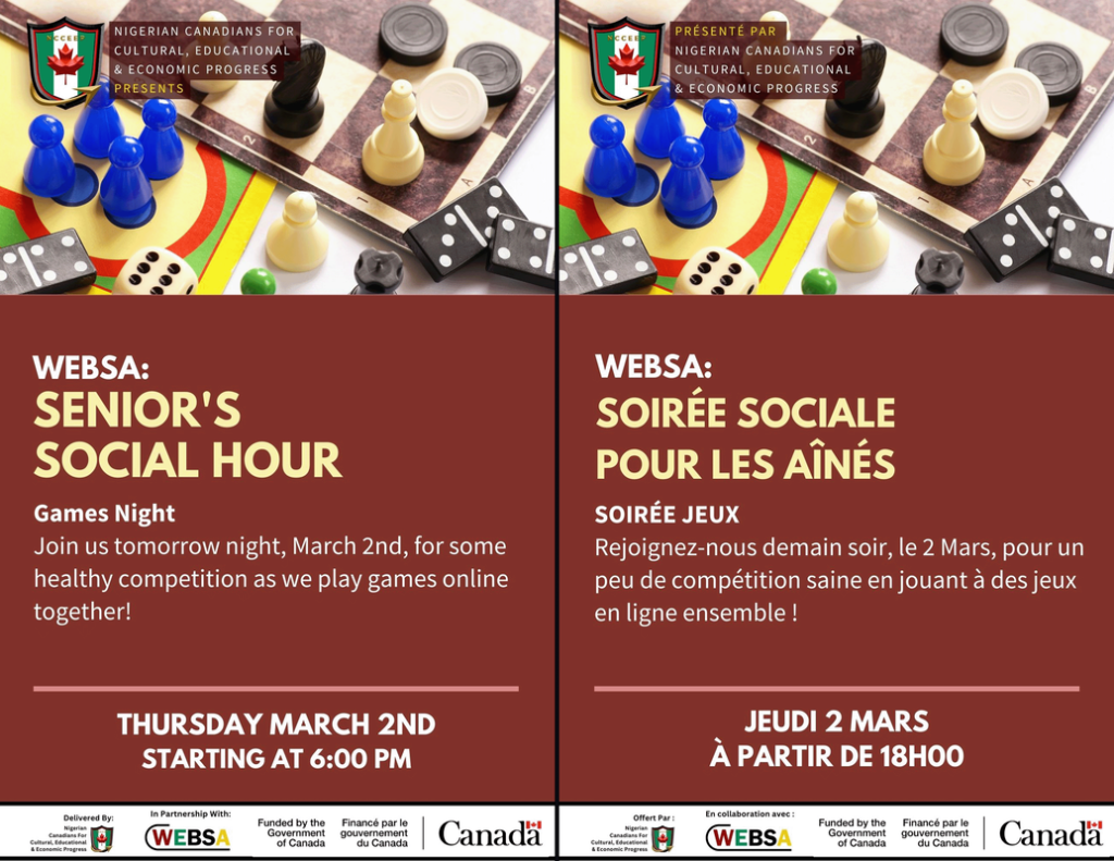 The Windsor Essex Black Senior Association has partnered with NCCEEP to present the weekly program, Senior’s Social Hour. An online social (via ZOOM) where seniors can connect with each other and participate in crafting, light exercise, and many other activities.