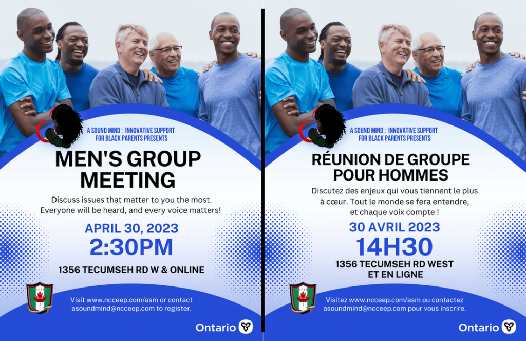 Join us on Sunday, April 30th at 2:30 pm for the Men’s Group Meeting. These meetings are a safe place to discuss all the issues that matter to you the most. The meeting will be held in person at the BCCEEP Centre and virtually over ZOOM.