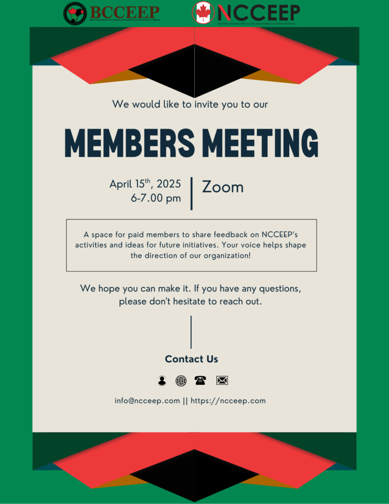 Please join us on Zoom to hear updates and discuss what matters most to the NCCEEP community. To receive the zoom link, please contact us at info@ncceep.com or ask to join the NCCEEP Whatsapp group.