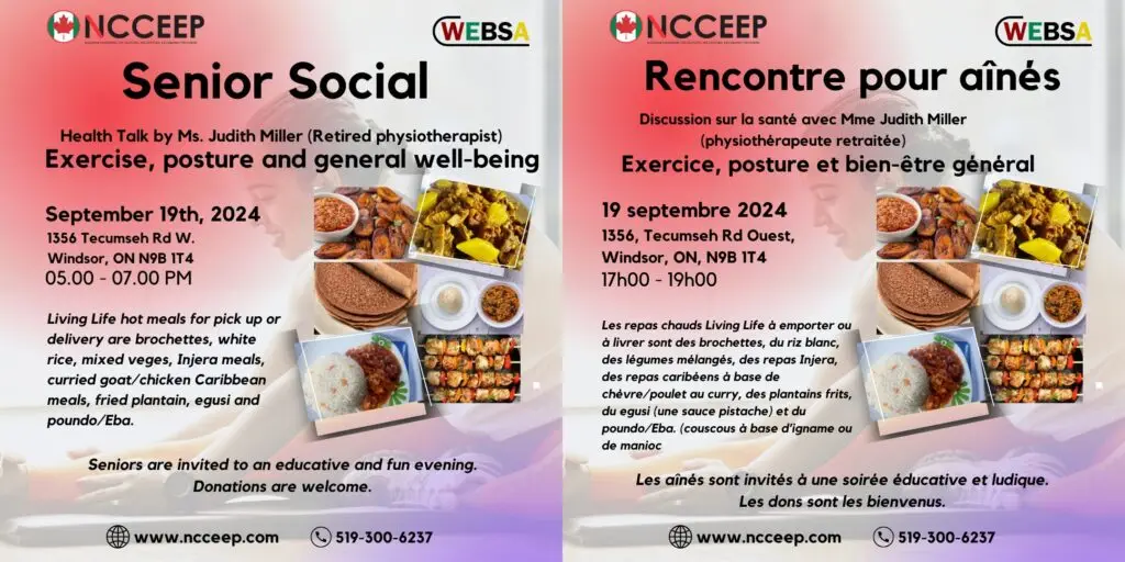 Seniors aged 55 and older are invited to the Senior Social event on September 19th. This week, we will have a short health talk by Ms. Judith Miller, a retired physiotherapist, on the topic of “Exercise, Posture, and General Well-being.” Join us for an informative and engaging session to learn valuable tips for maintaining your health and improving your overall well-being.