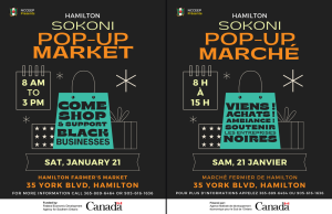 Saturday, January 21st @8am-3pm Shop & Mingle with local Black-owned businesses on Saturday, January 21st at the Hamilton Sokoni Pop-Up Market! ---- For further questions about Hamilton Sokoni EMAIL: hamiltonsokoni@ncceep.com CALL: Tolu 905-616-1636 OR Peter 365-889-6464