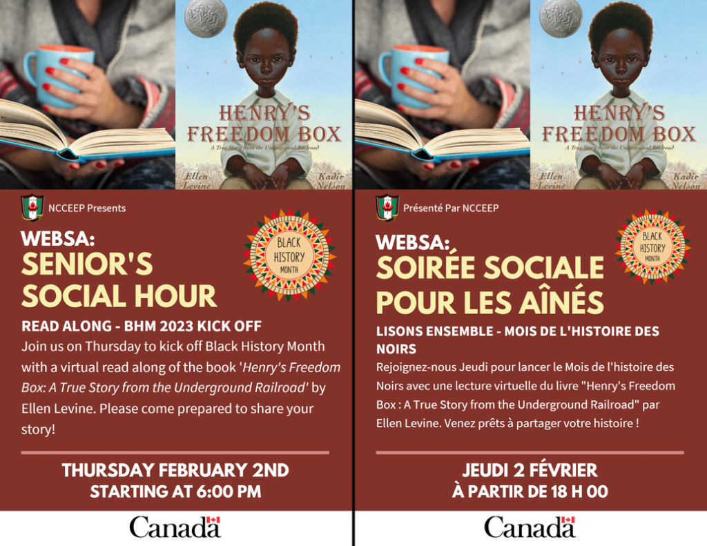 La Windsor Essex Black Senior Association s'est associée au NCCEEP pour présenter le programme hebdomadaire Senior's Social Hour. Un événement social en ligne (via ZOOM) où les personnes âgées peuvent se connecter les unes aux autres et participer à des activités d'artisanat, d'exercices légers et à de nombreuses autres activités.